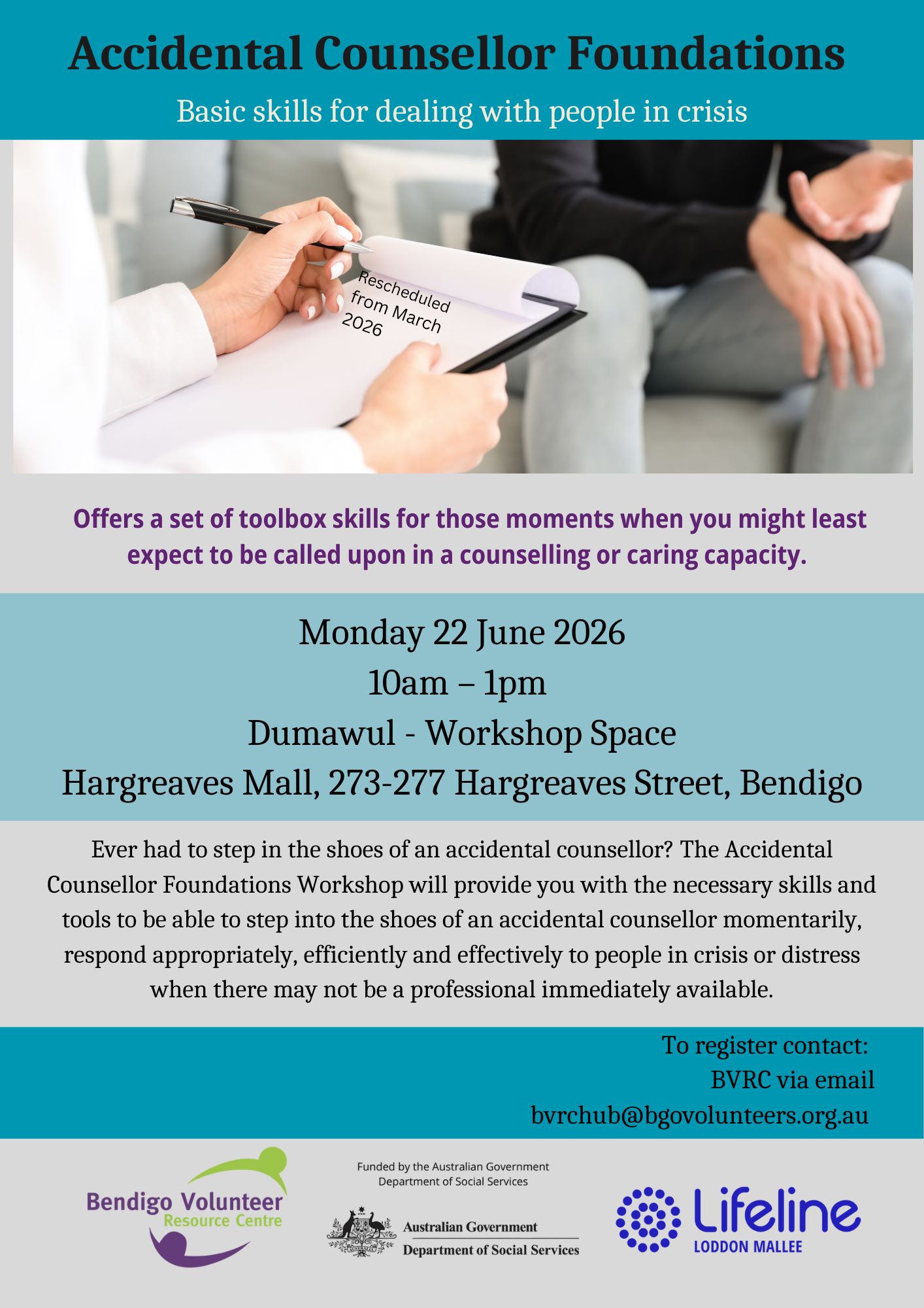 Your local directory of services, events, and volunteer opportunities for sporting, recreation, and community groups, not-for-profit organisations, Allied Health, Aged Care and NDIS service providers, and schools in Greater Bendigo. You can also follow the CONNECT Greater Bendigo Facebook page to keep up-to-date https://www.facebook.com/connectgreaterbendigo