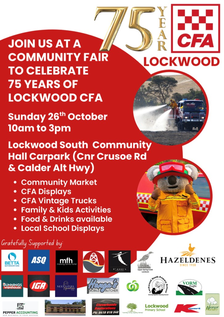Lockwood CFA 75yr Birthday incorporating Community Fair including Kelly Sports, Face Painting, BBQ, Market, local Schools