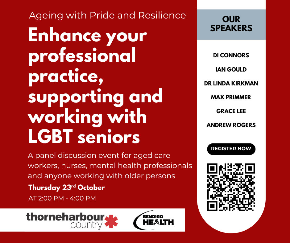 A free panel discussion for mental health and aged care service providers to gain practical strategies in supporting LGBT seniors in regional Victoria